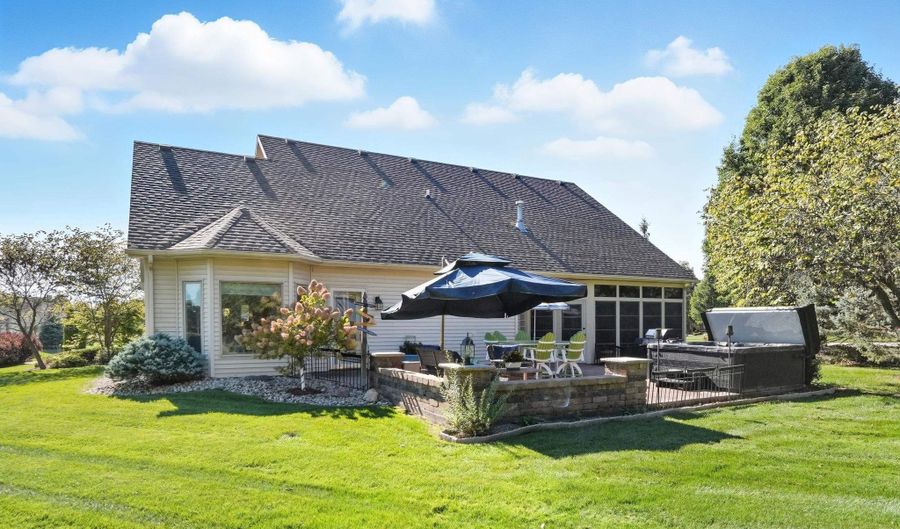 Introducing a remarkable Villa on Bridgewater Golf Course, featuring 3 bedrooms, 2 1/2 half baths. This stunning property blends the serenity of golf course living with leisurely accommodations. Step inside to discover an open and inviting floor plan that creates an ambiance of elegance and comfort. The designed kitchen has ample countertop space, and a convenient breakfast bar with brand new solid surface countertops and appliances. It is the perfect spot for culinary enthusiasts and for entertaining guests. The living areas are thoughtfully laid out with large windows that offer breathtaking views. The inviting living room is perfect for relaxing and unwinding after a long day. The master bedroom suite is a sanctuary in itself, featuring a private ensuite bathroom, complete with amenities, such as a soaking tub and stand-alone shower. The additional two bedrooms are equally spacious and offer ample closet space. The house also offers convenient and versatile spaces such as a home office, a dedicated laundry room, and a bonus basement room that can be used as a media room or a playroom. Outside, after walking through a gorgeous three season room, enjoy the stamped concrete patio with plenty of room to relax and entertain that also includes a hot tub!