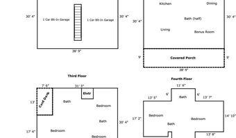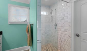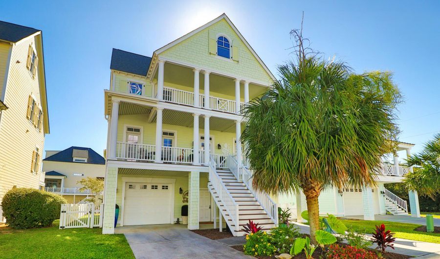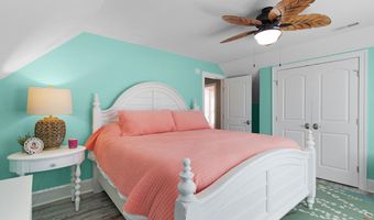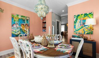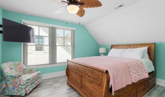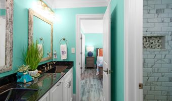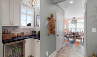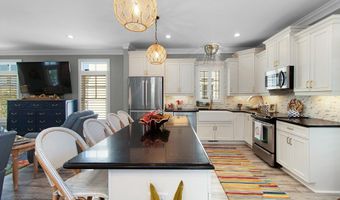 This updated coastal retreat in the desirable Cottages at Bay Ridge offers 5 bedrooms and 4 ½ baths, thoughtfully designed across four levels of living space. The ground floor welcomes you with a single-car garage and conditioned space (not included in GLA) featuring a living area with a wet bar, half bath, and access to both a covered patio and a full-service elevator that serves two upper levels. The second floor is the heart of the home, boasting an open and spacious layout with LVP flooring throughout. The kitchen is beautifully appointed with white cabinetry, a tile backsplash, stainless steel appliances, and a large island with extra seating, flowing seamlessly into the living area. From here, step out onto the covered screened porch or the uncovered deck for coastal breezes, or make use of the adjoining butler's pantry that connects to the dining area. A bonus room, currently used as an additional living area, and a half bath complete this floor. On the third level, the primary suite offers access to a private covered deck and an ensuite with dual vanity and tile shower. Two additional bedrooms share a convenient Jack and Jill bath. The fourth floor provides even more space with two guest bedrooms, each with its own bath, along with a cozy den area. Perfect for family living or entertaining, this home captures the essence of coastal comfort with modern updates and thoughtful design.
