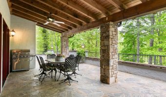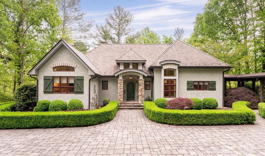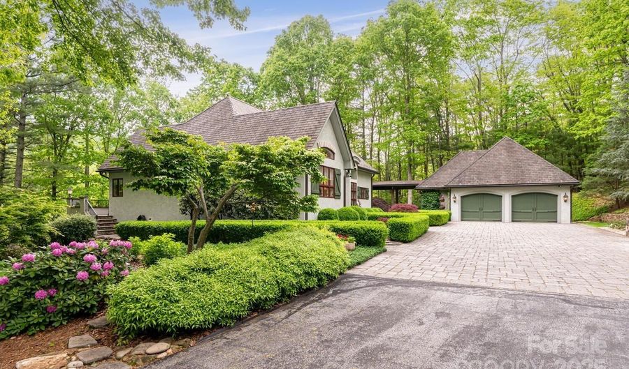 Exquisite Mountain Sanctuary on 1.3 Acres with Unparalleled Landscaping & Luxury Finishes. Prepare to be captivated by this truly exceptional residence - a stunning architectural masterpiece set on 1.3 private acres, surrounded by meticulously curated gardens, extensive stonework, and lush landscaping. From the moment you arrive the long, elegant driveway and cobblestone-paved courtyard set the tone for the refined mountain living that awaits. Step inside to soaring cathedral ceilings, solid hickory hardwood floors, and an open-concept layout that seamlessly connects the great room, dining room, and gourmet kitchen. A dramatic floor-to-ceiling stone fireplace with a custom hickory mantle is flanked by built-in architectural shelving, offering warmth and sophistication in equal measure. The chef's kitchen is a true showpiece, featuring granite countertops, a large breakfast bar, high-end stainless steel appliances, a built-in Miele espresso machine, and a striking floor-to-ceiling stone surround encasing the 36-inch Viking gas range and vent hood. A large walk-in pantry and custom kitchen office with built-in hickory desk and shelving complete this entertainer's dream. Retreat to the luxurious primary suite, which includes a walk-in closet with built-ins and a spa-inspired bathroom featuring a freestanding soaking tub, dual vanities, and a beautifully tiled walk-in shower. Completing the main level is a powder bath and laundry room with sink and cabinetry. The finished lower level offers a spacious family/recreation room, two guest bedrooms (one ideal as a home office), a full bath, and an expansive heated storage space. A handcrafted timber-framed breezeway connects the home to the oversized, heated two-car garage with a dedicated workshop. Outdoor living is nothing short of magical, with a timber-framed main level patio finished in slate and decorative iron railings, plus a terrace-level patio perfect for quiet moments or entertaining. The breathtaking landscaping includes stone steps, paths, and hardscape details that create a garden sanctuary unlike any other. Located just minutes from Asheville, Hendersonville, Brevard, and the Asheville Regional Airport, this is luxury mountain living at its absolute finest - truly a one-of-a-kind property that must be seen to be fully appreciated.