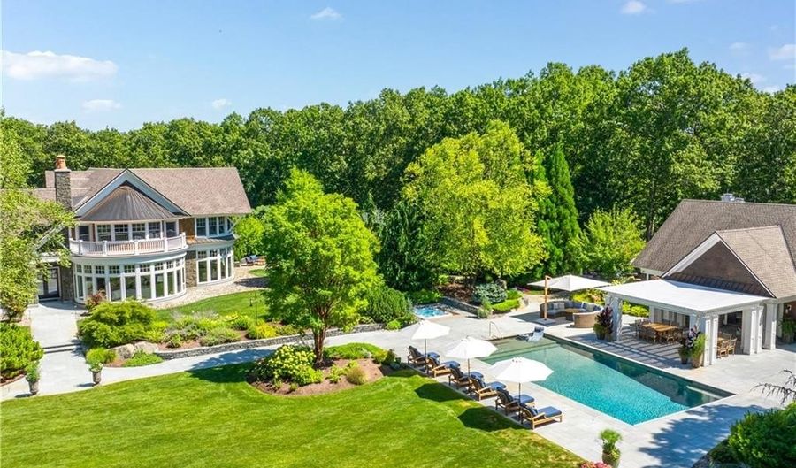 “Sprawling Oaks," an incomparable trophy estate and seven acre private gated compound surrounded by hundreds of acres of conservation land. This exceptional property embodies the ultimate blend of privacy, luxury, and resort-style living, defined by stunning architecture and impeccable design. The main residence has been completely reimagined by Blakely Interior Design, showcasing Mac Davis flooring, wallpaper by Phillip Jeffries, and a dramatic two-story spiral staircase. The designer kitchen features custom walnut cabinetry, dual Waterstone faucets, and floor-to-ceiling windows that fill the home with natural light. Mature landscaping and specimen trees curated by Gates, Leighton & Associates. Designers including Waterworks and Holly Hunt contribute to the home’s refined aesthetic. Perfect for entertaining, the grounds feature an in-ground saltwater pool, cabana with dual kitchens, bathroom, and laundry area. Additional resort-style amenities include a helipad, stone pizza oven, outdoor sauna, and chicken coop. A separate studio offers flexible use as an office, gym, yoga, or art space. Interior highlights include a home theater, elevator, and state-of-the-art security system. A four-bay garage accommodates car collections, while a separate industrial garage provides space for utility vehicles or boats. Ideally situated near private aviation facilities and Rhode Island’s finest beaches, this estate was recently featured in Boston Home Magazine.
