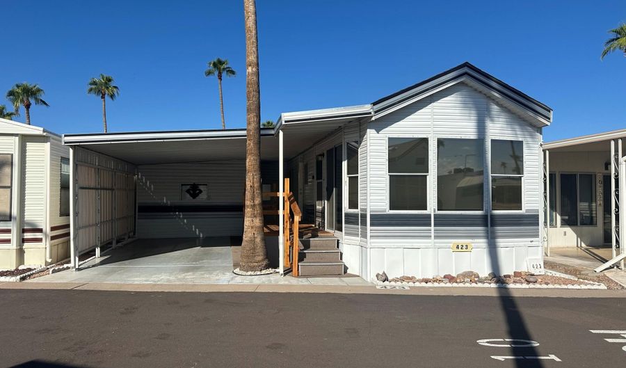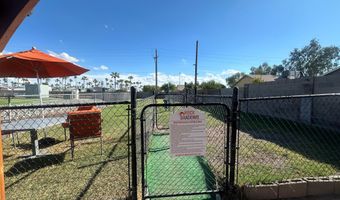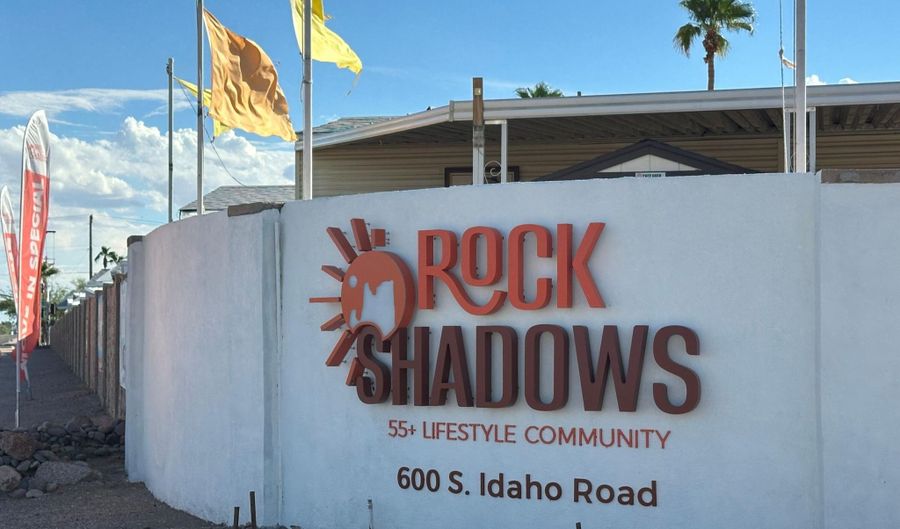 Welcome to Rock Shadows, a highly sought-after 55+ community! This beautiful furnished 1 bedroom, 1 bath home with a private driveway features a bright, open floor plan where the living room flows into dining area & kitchen. The galley kitchen offers abundant cabinets, generous counter space, and an efficient layout perfect for everyday living. Additional highlights include a custom oversized porch w/extra storage space under porch. The porch is ideal for outdoor dining, & entertaining. The private Laundry room/hobby shop/storage rm has extra storage. Rock Shadows offers a resort-style lifestyle with amenities such as shuffle board, spa swimming pool, fitness center, pickleball, dog park, Clubhouse/Rec room, & media room for community events. It's conveniently located minutes from US-60, shopping, dining, and medical facilities, this home provides both comfort and convenience in a welcoming neighborhood.